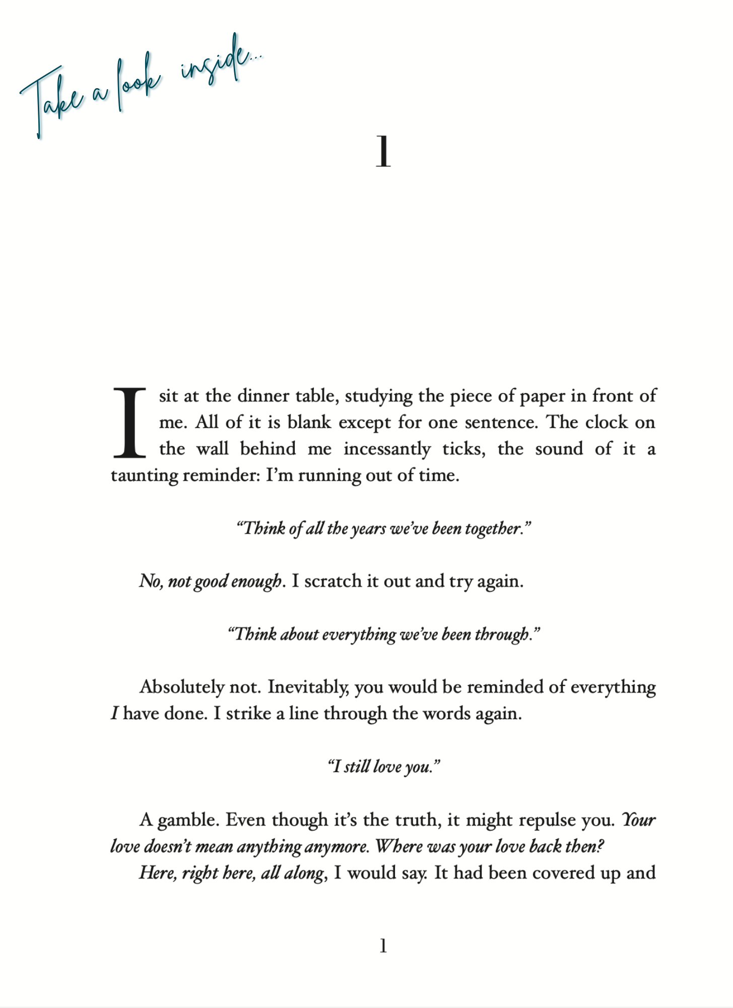 Now, after eleven years together, Jackson finds himself in the midst of their divorce proceedings. Granted only one more day to see Evelyn, to set things right, he struggles to hold onto his fading past: Raging against the inevitable, he writes to her in one last attempt to save the life they made and destroyed. But that's just it with tragedy--it can either bring two people together, or completely tear them apart.